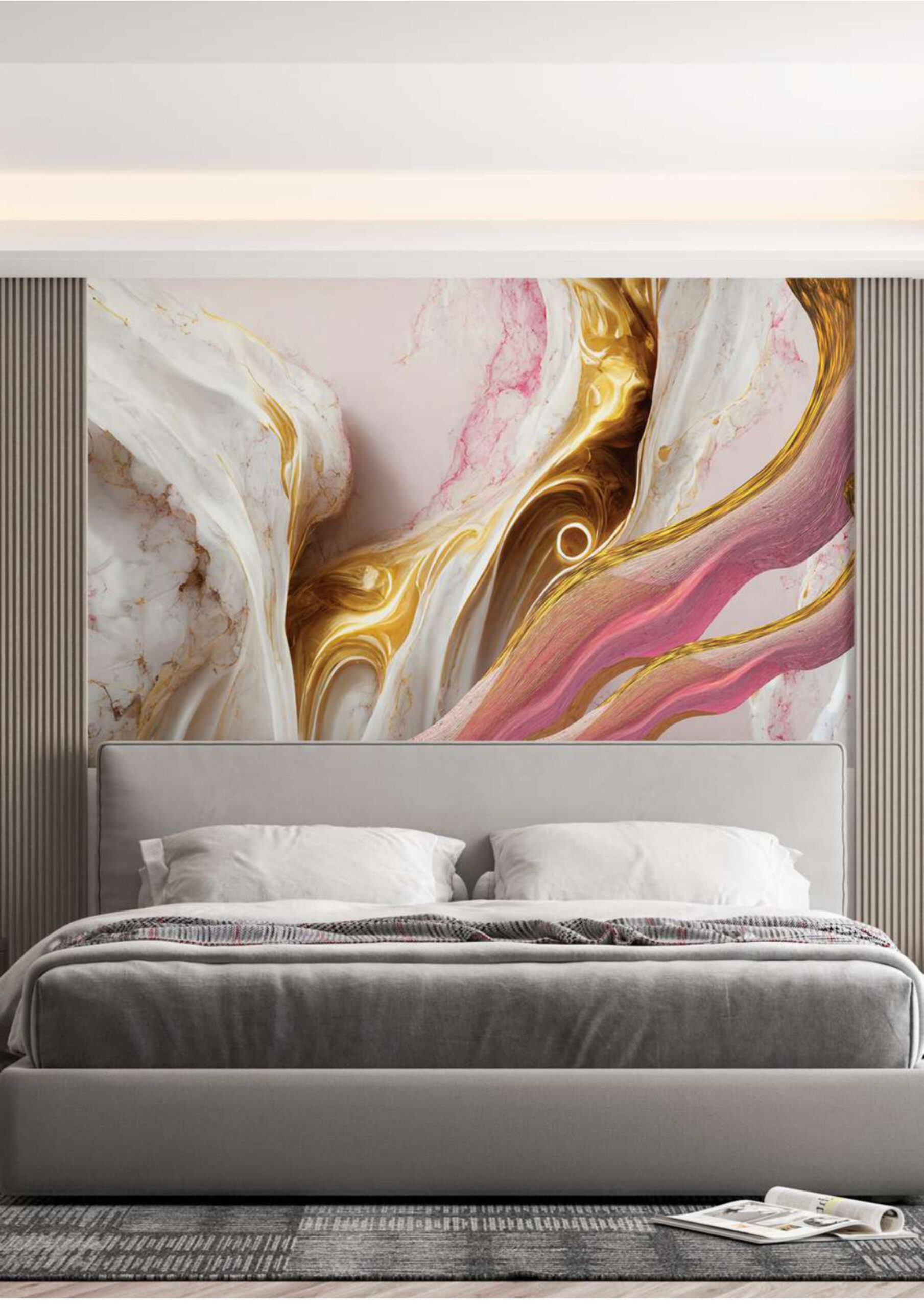 Pink Gold Marble Wallpaper Mural – 8×4 Feet | Multicolor